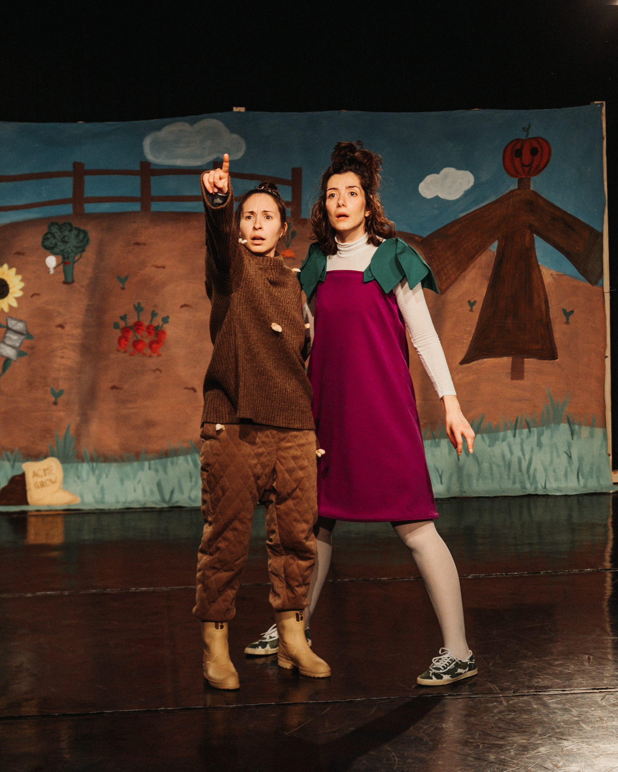 U estetici koja se oslanja na fizički teatar, geg i klauneriju, upoznajemo Patlidžanka i Krumpira koji su nezadovoljni svojim izvanjskim kvalitetama kao povrćanci – Patlidžanko se osjeća kao da je predimenzioniran za svijet u kojem živi dok se Krumpirko u njemu osjeća neugledno i nevidljivo (pored svog drugog šarenog povrća).
